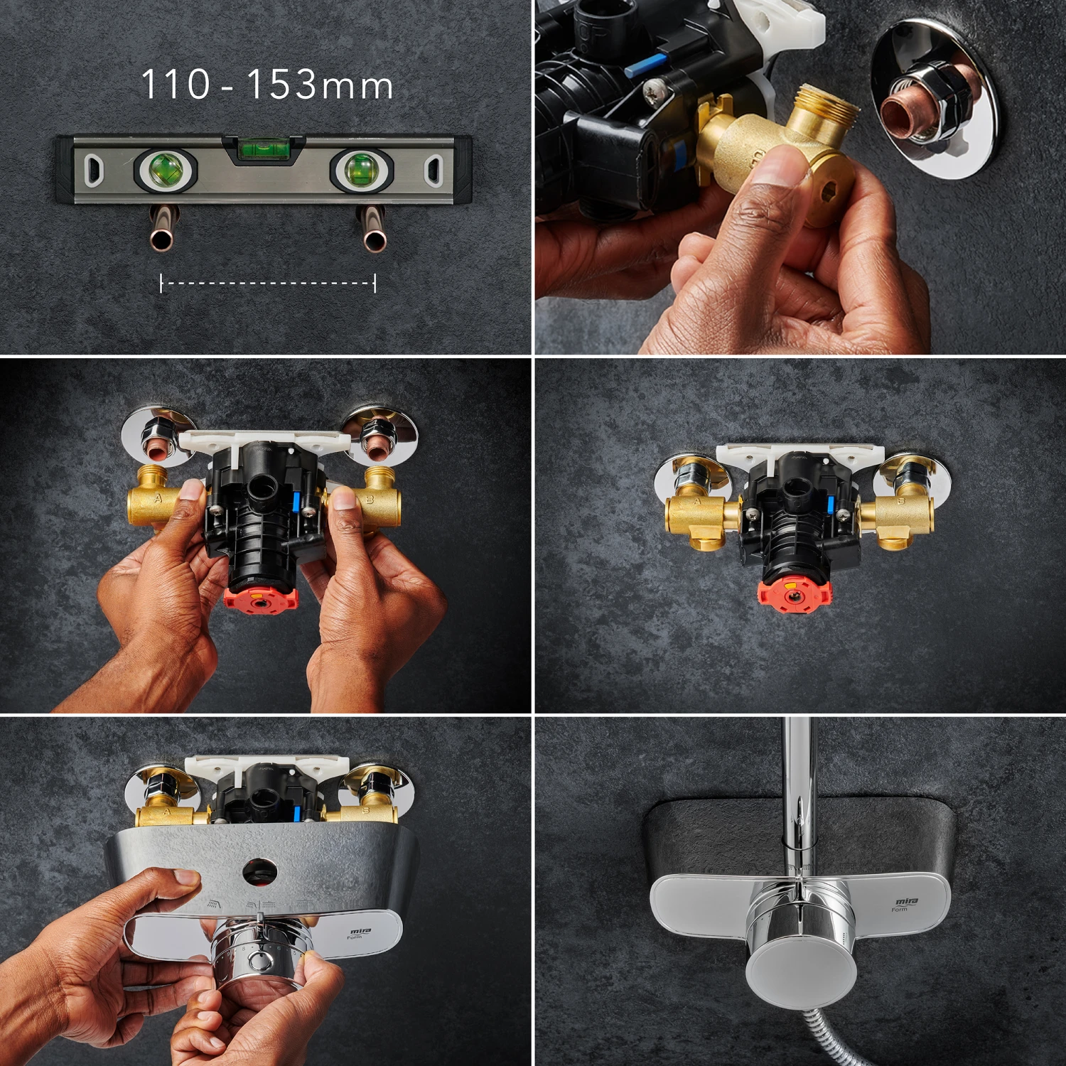 - Mira���s unique thermostatic mixer design has adjustable inlet connections that retro-fits 95% of concentric mixers with 110���153mm pipe centres.