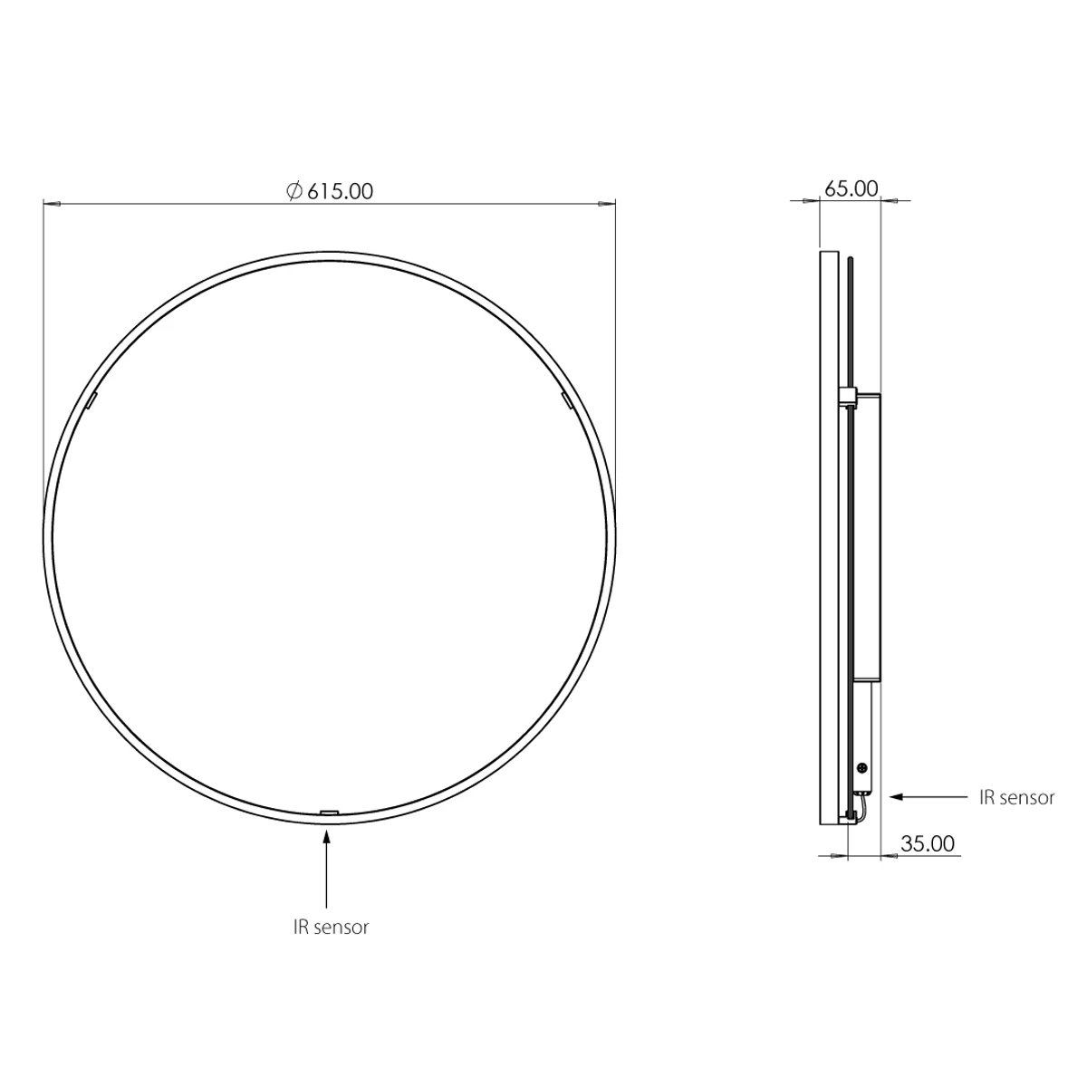 Circular Floating edge LED mirror, 600 diameter.