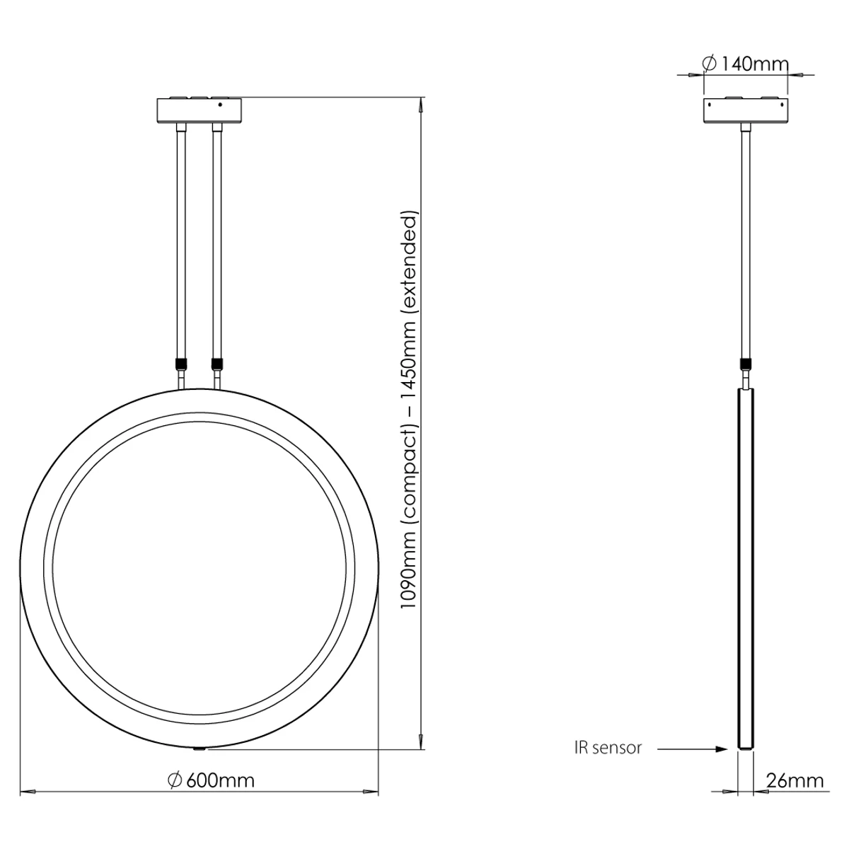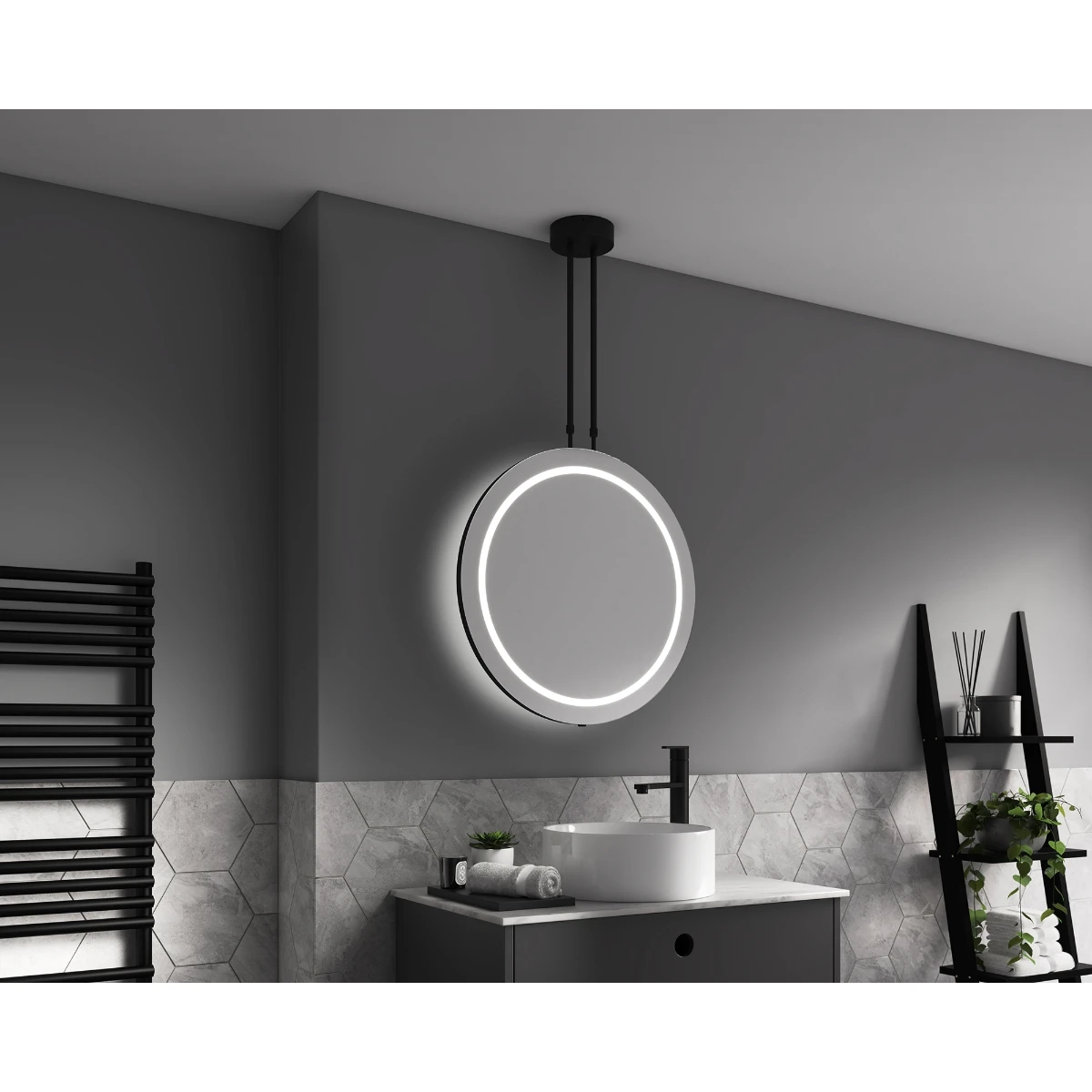 Circular Double sided illuminated hanging LED mirror, 600 diameter.