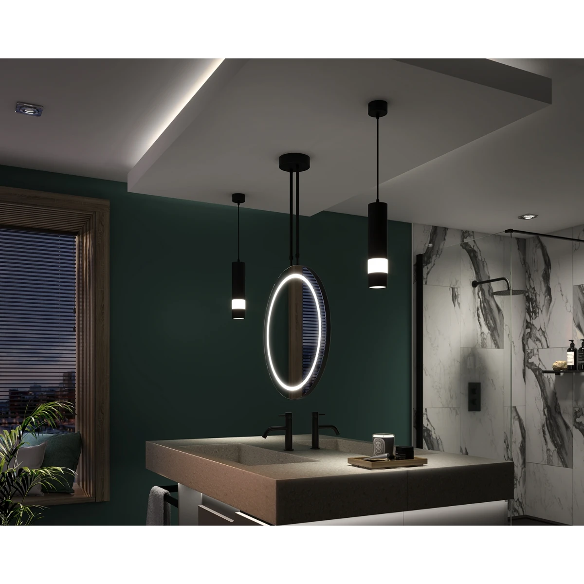 - Fully diffused, colour temperature changing LEDs